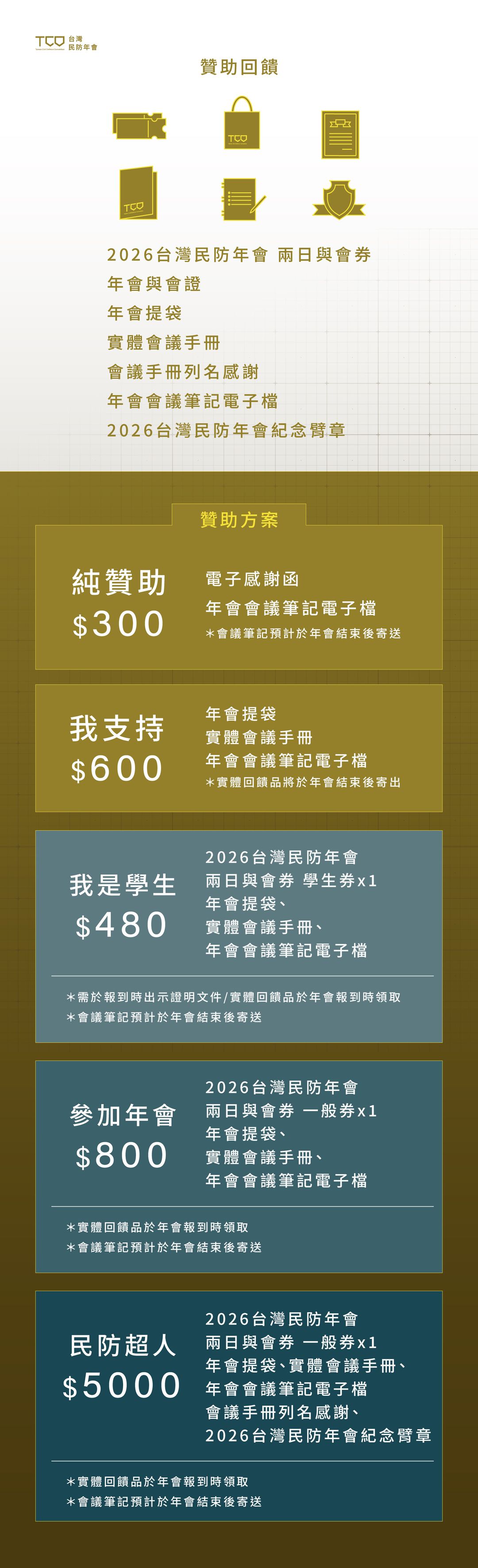 (6)贊助「我是學生」方案,需於年會報到時出示相關證明文件,如未能證實在學身份,將取消學生方案資格。